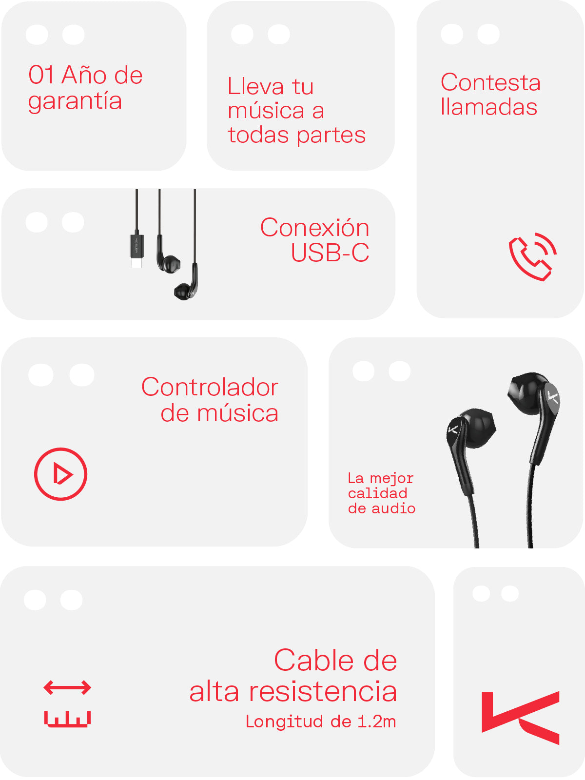 AudÍfonos Inear Cable 1.2m USB-C Harrey-101N