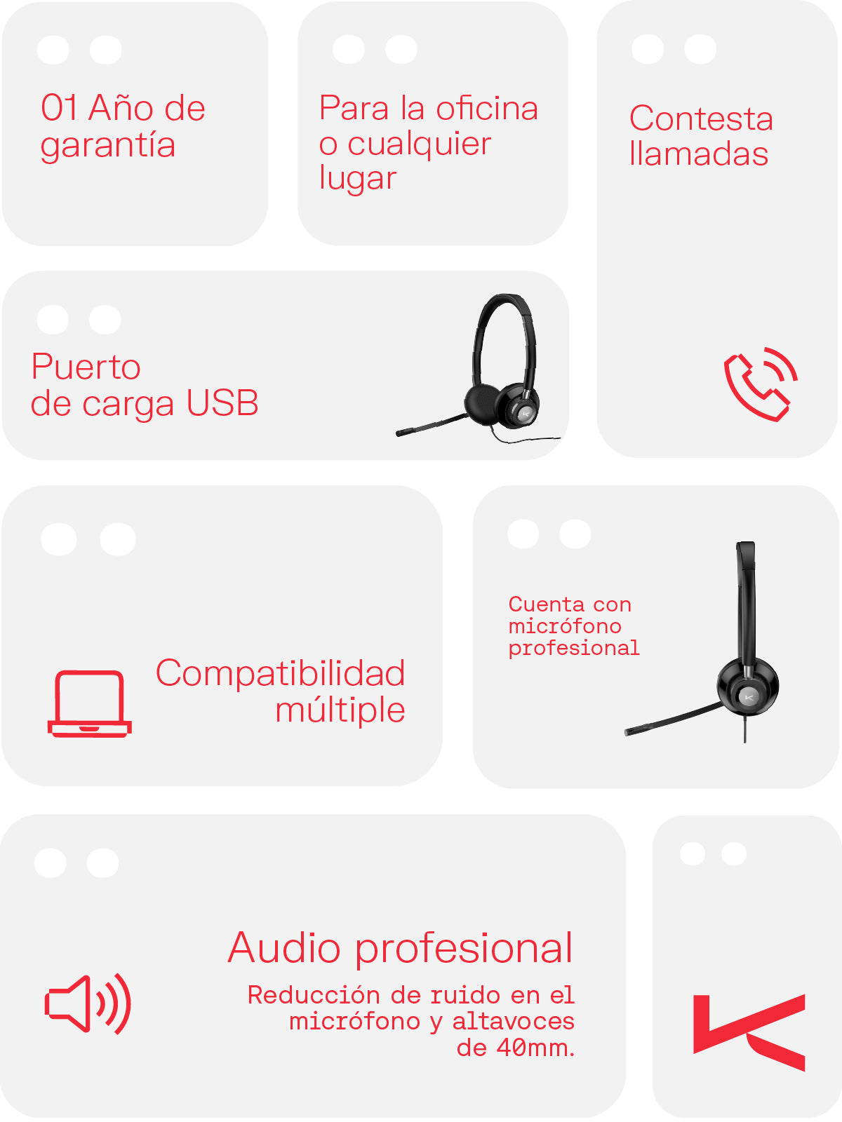 - Multiplataforma conector 3.5mm, USB o USB-C