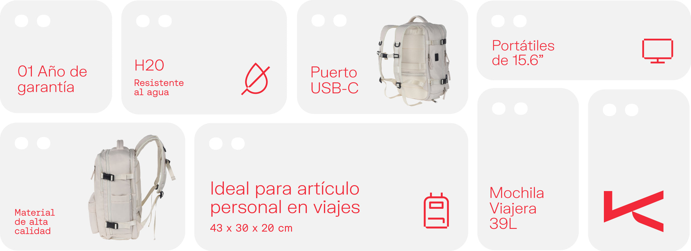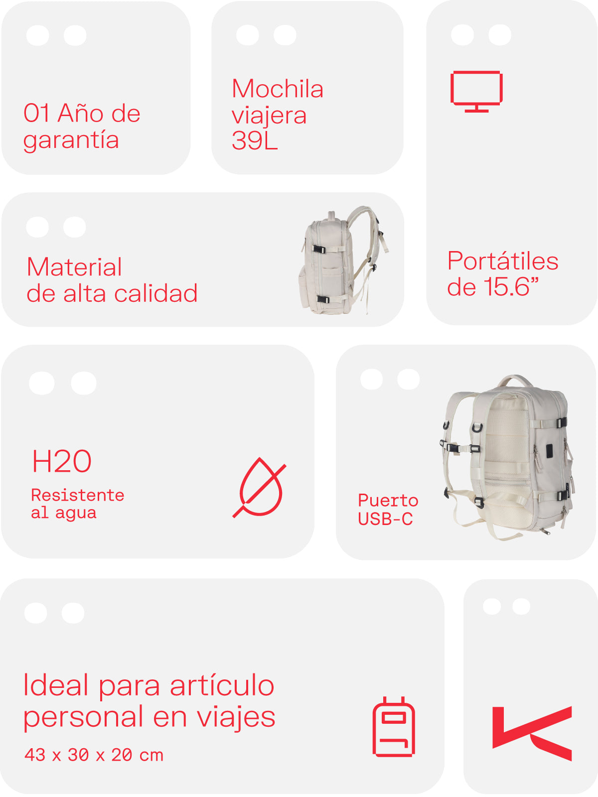 Mochila de viaje deportiva cabinera grande espaciosa beige Kuzler