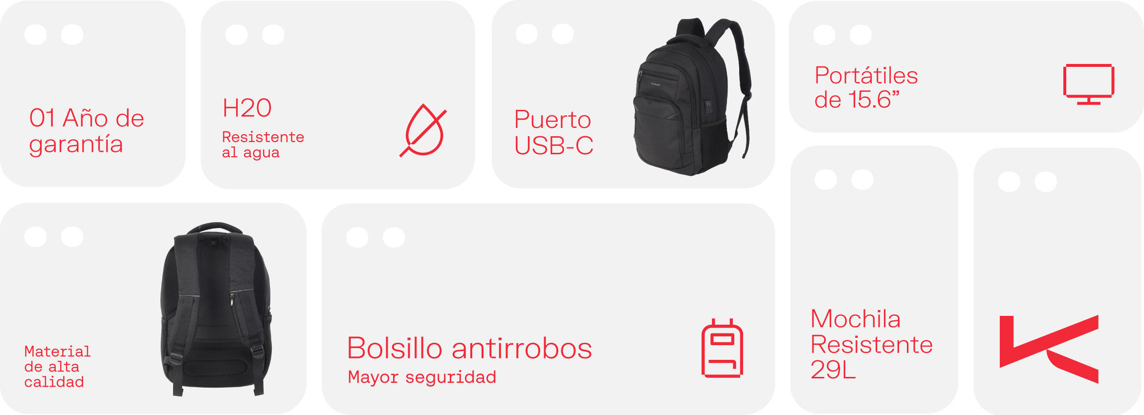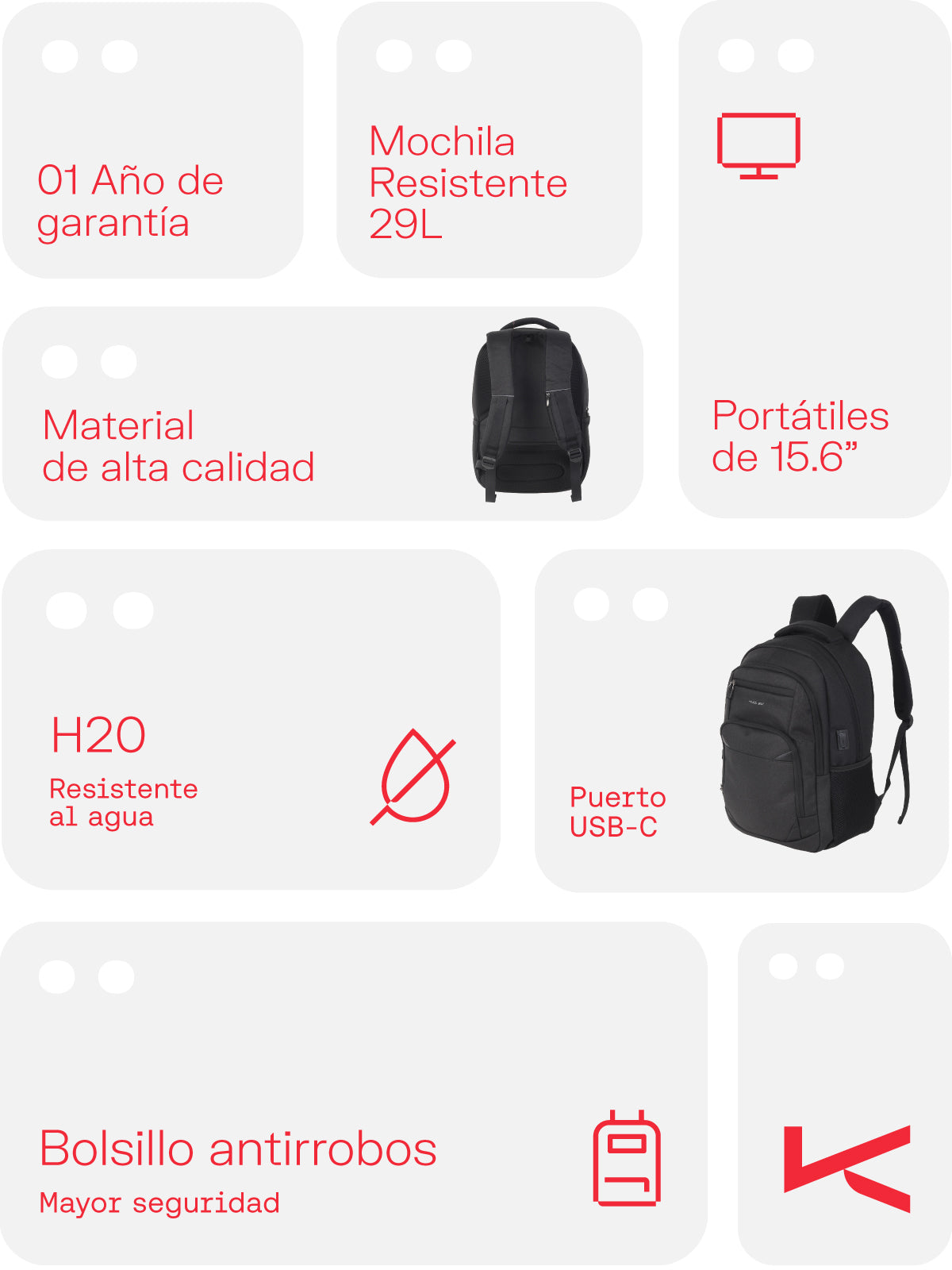 Mochila laptop 15.6" puerto cargador y bolsillo antirobo negro Kuzler