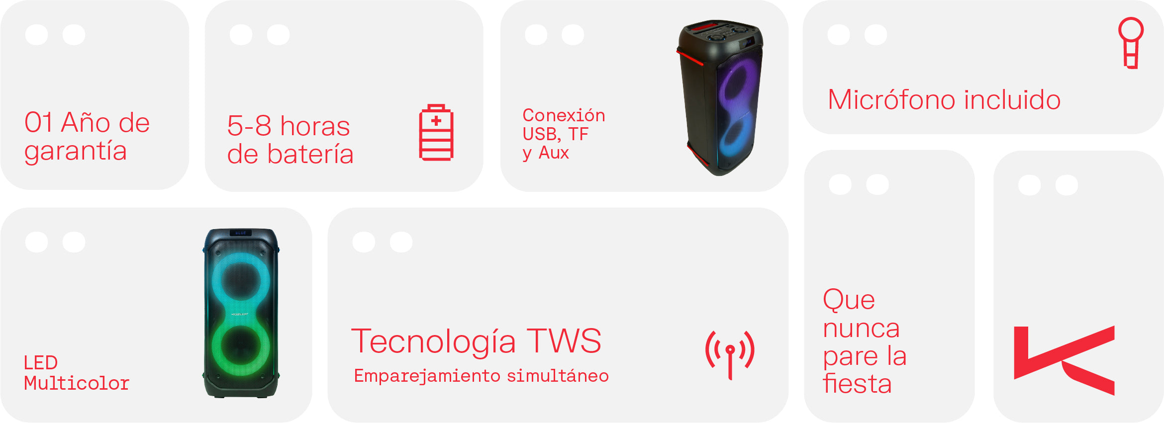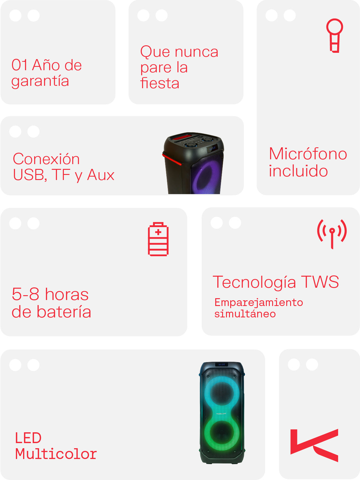 Diseñado para quienes quieren disfrutar karaoke, música y buen sonido en cualquier ambiente, sin complicaciones ni equipos pesados. Una solución todo-en-uno para fiestas familiares, eventos o entretenimiento en casa.