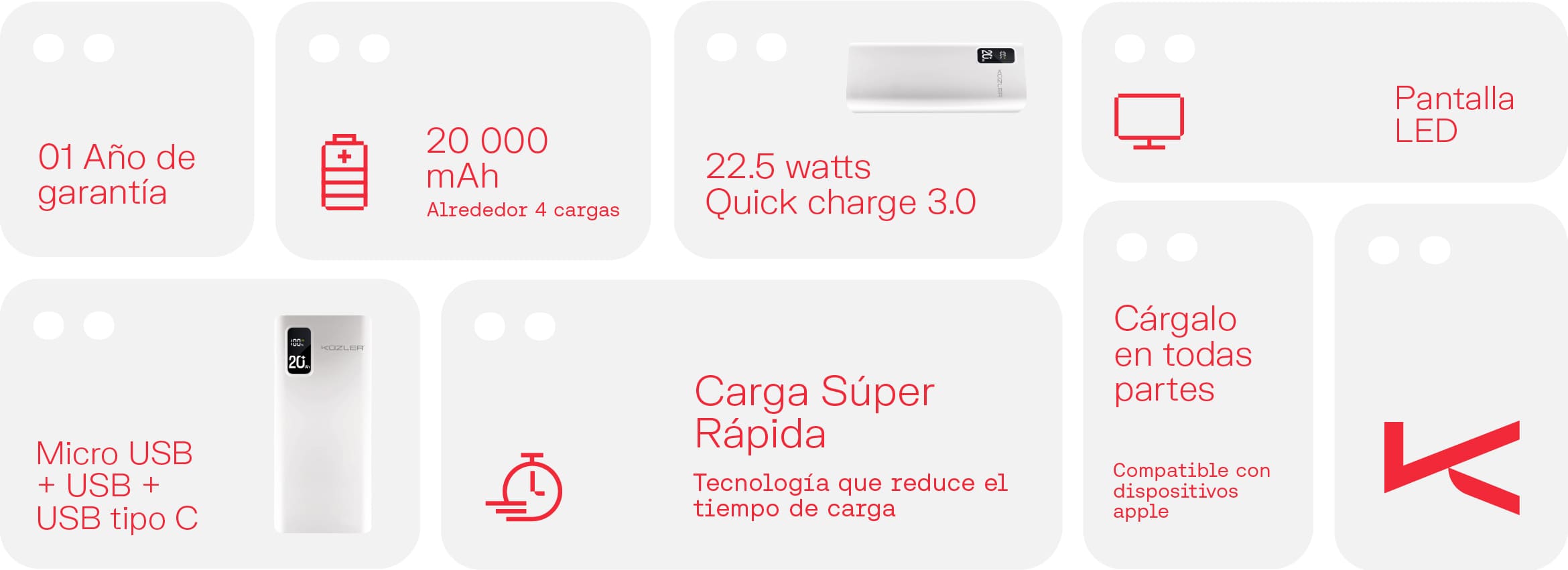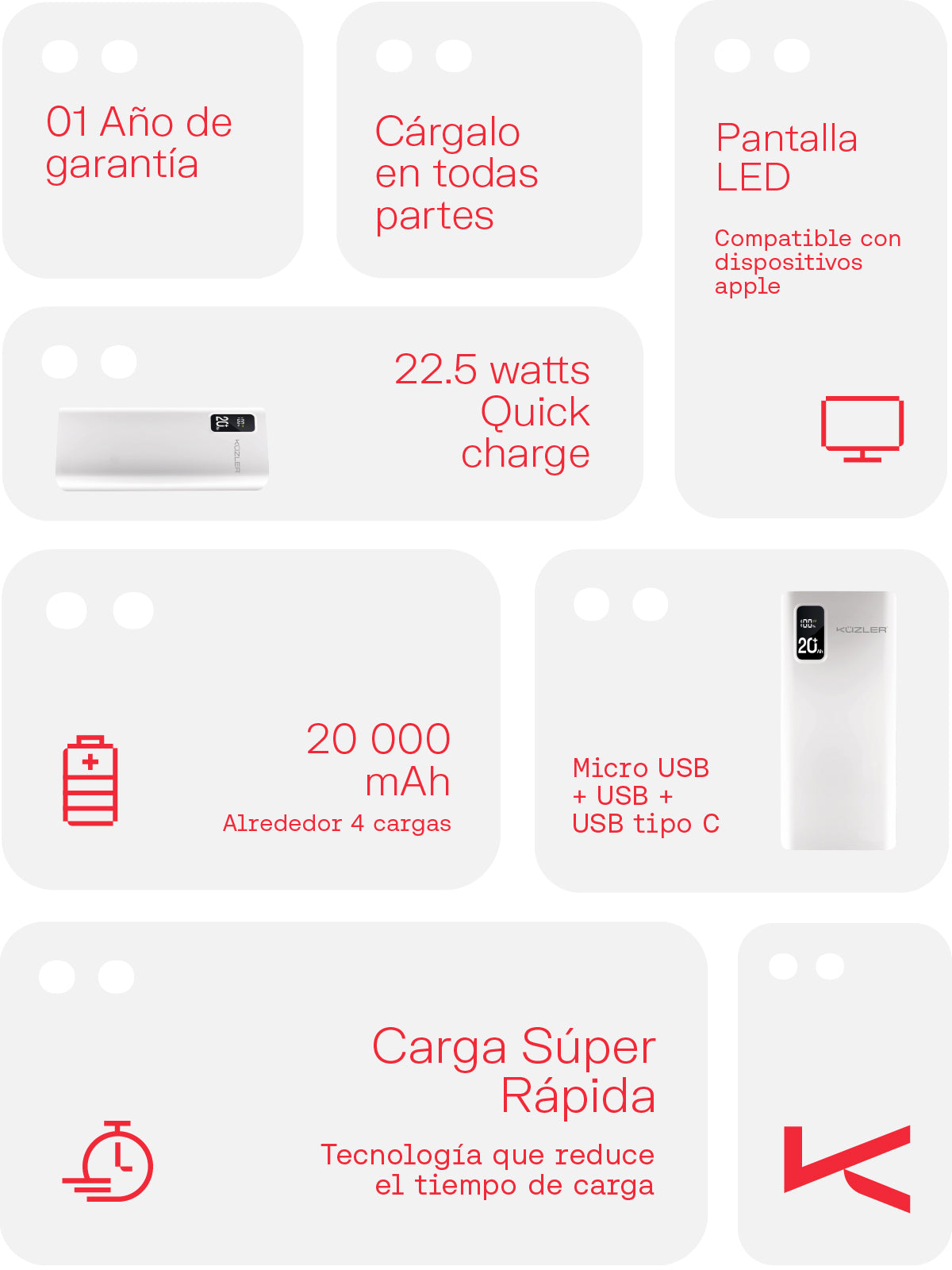 - Capacidad de 20,000 mAh