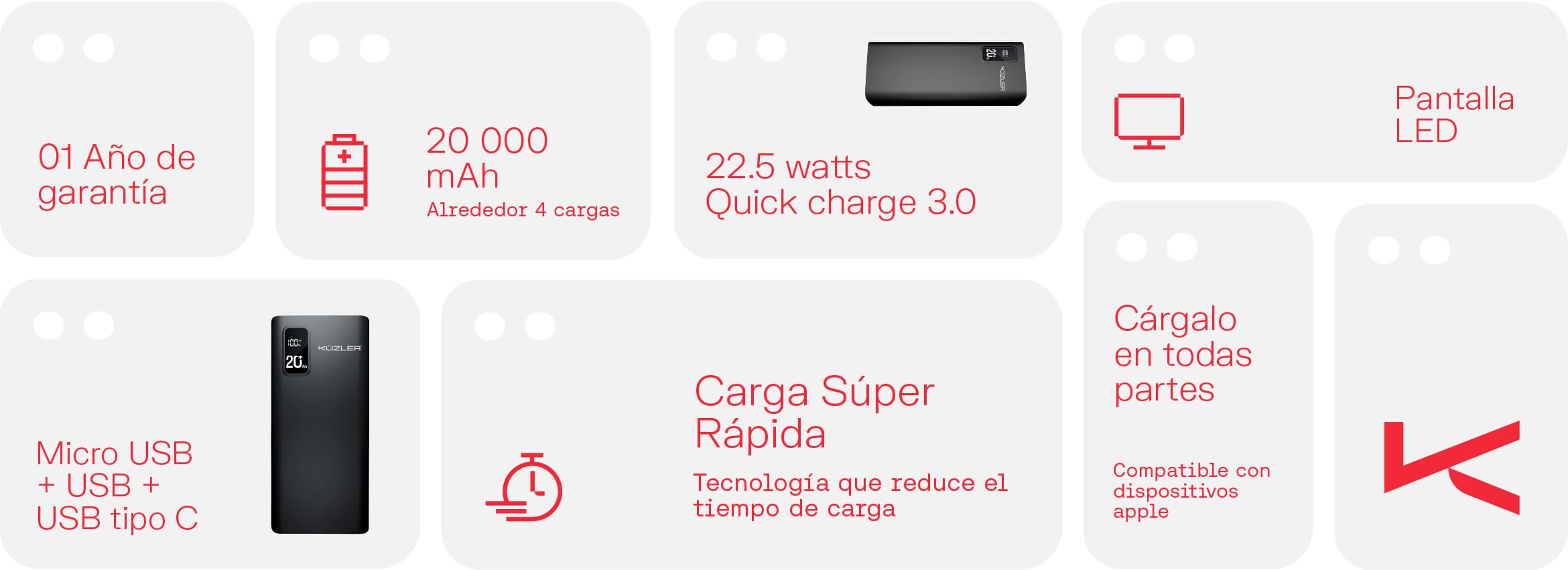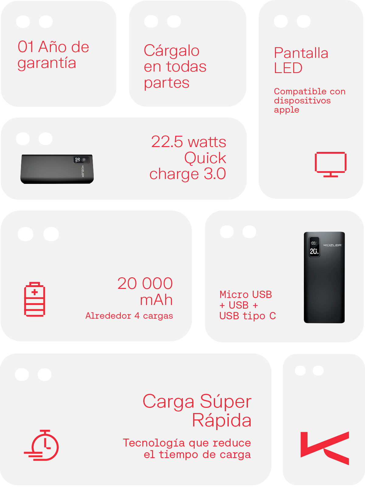 - Capacidad de 20,000 mAh