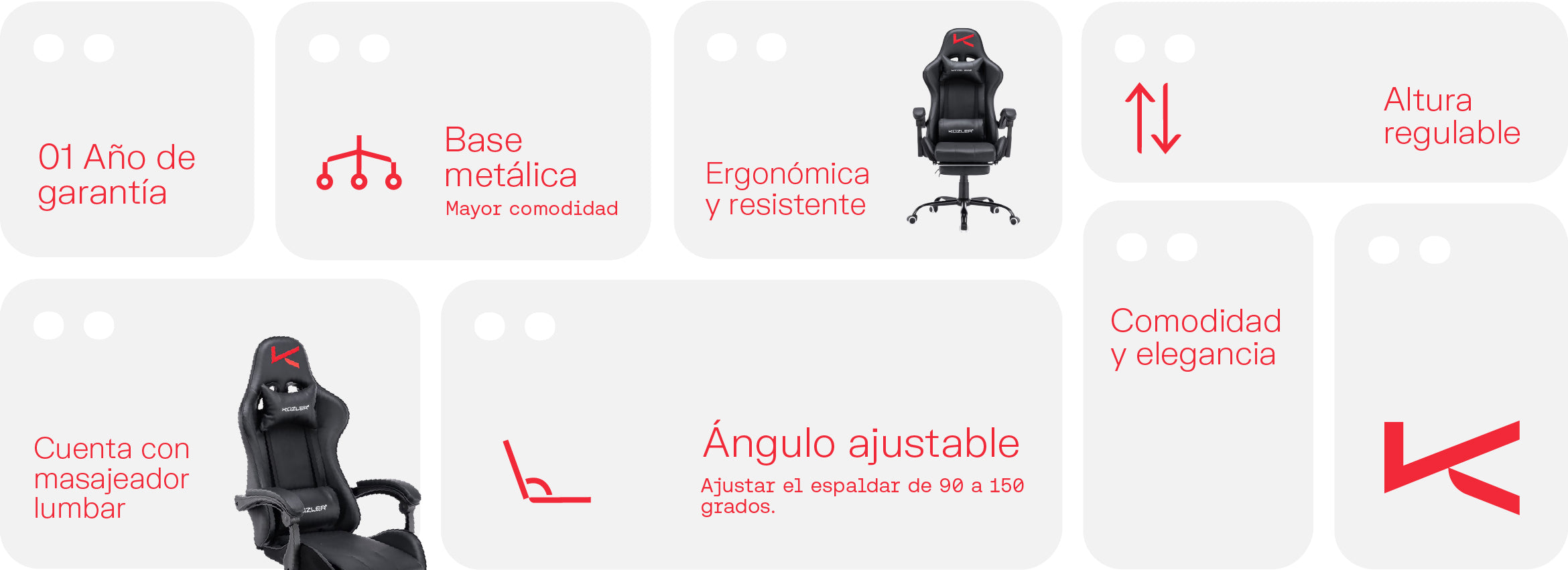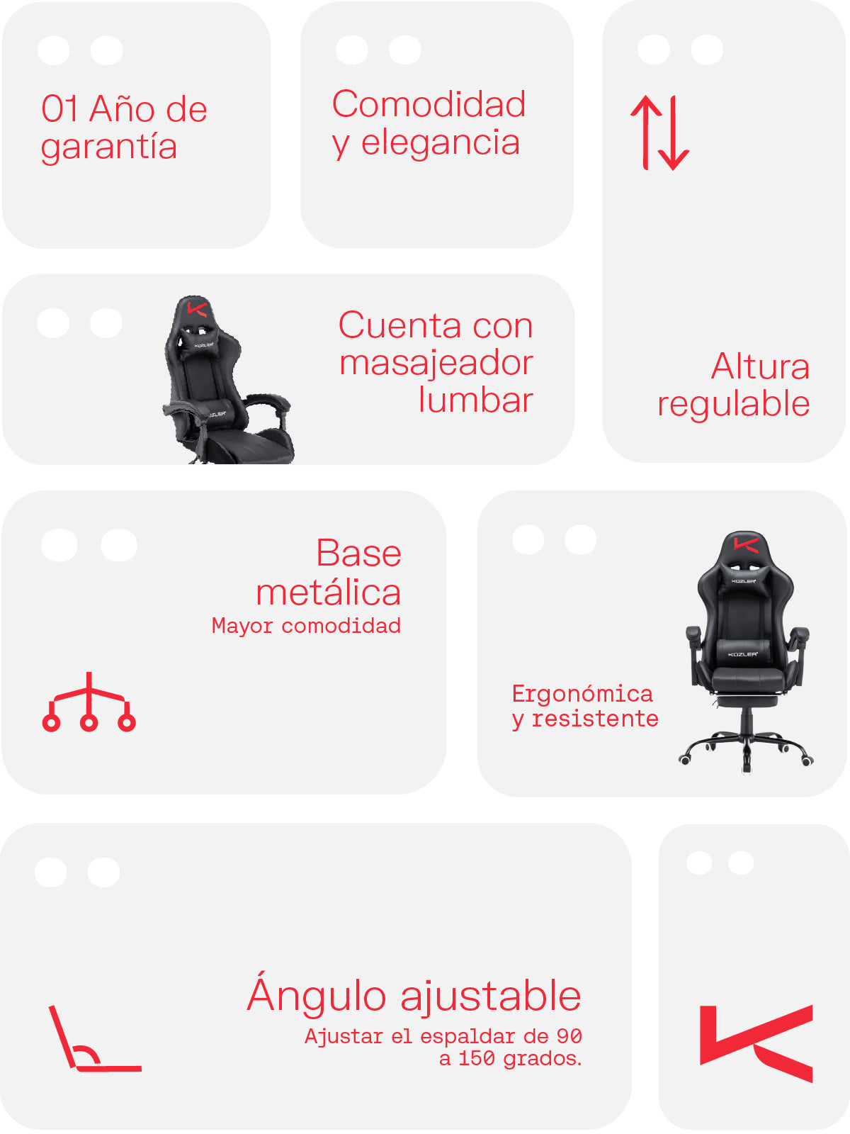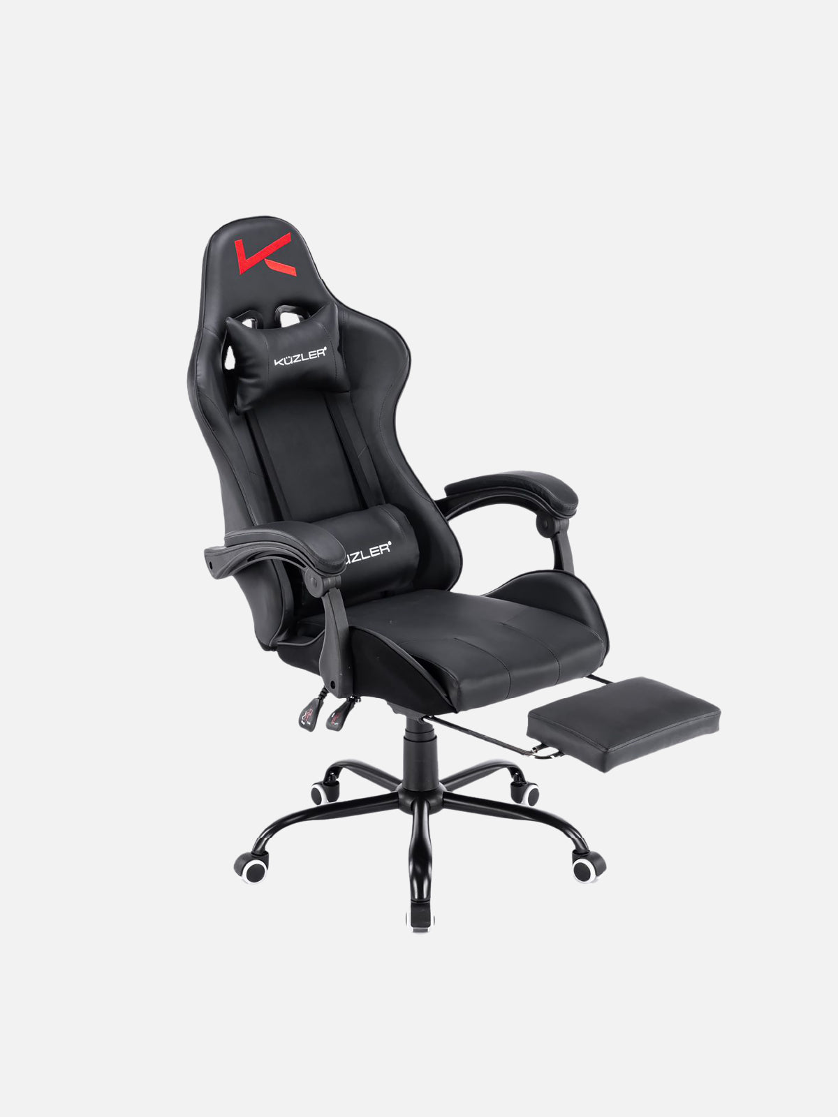 Silla Gamer negra black con masajeador lumbar, reposapiés y base metálica